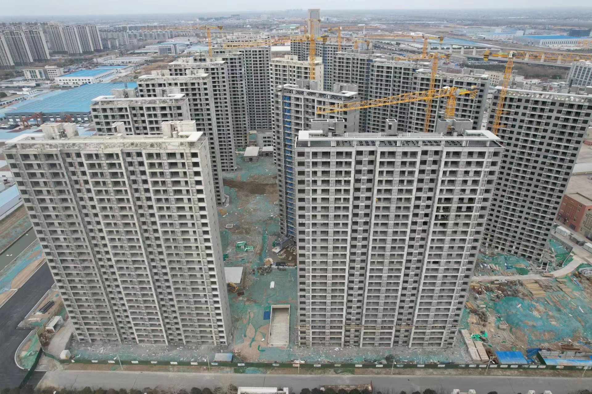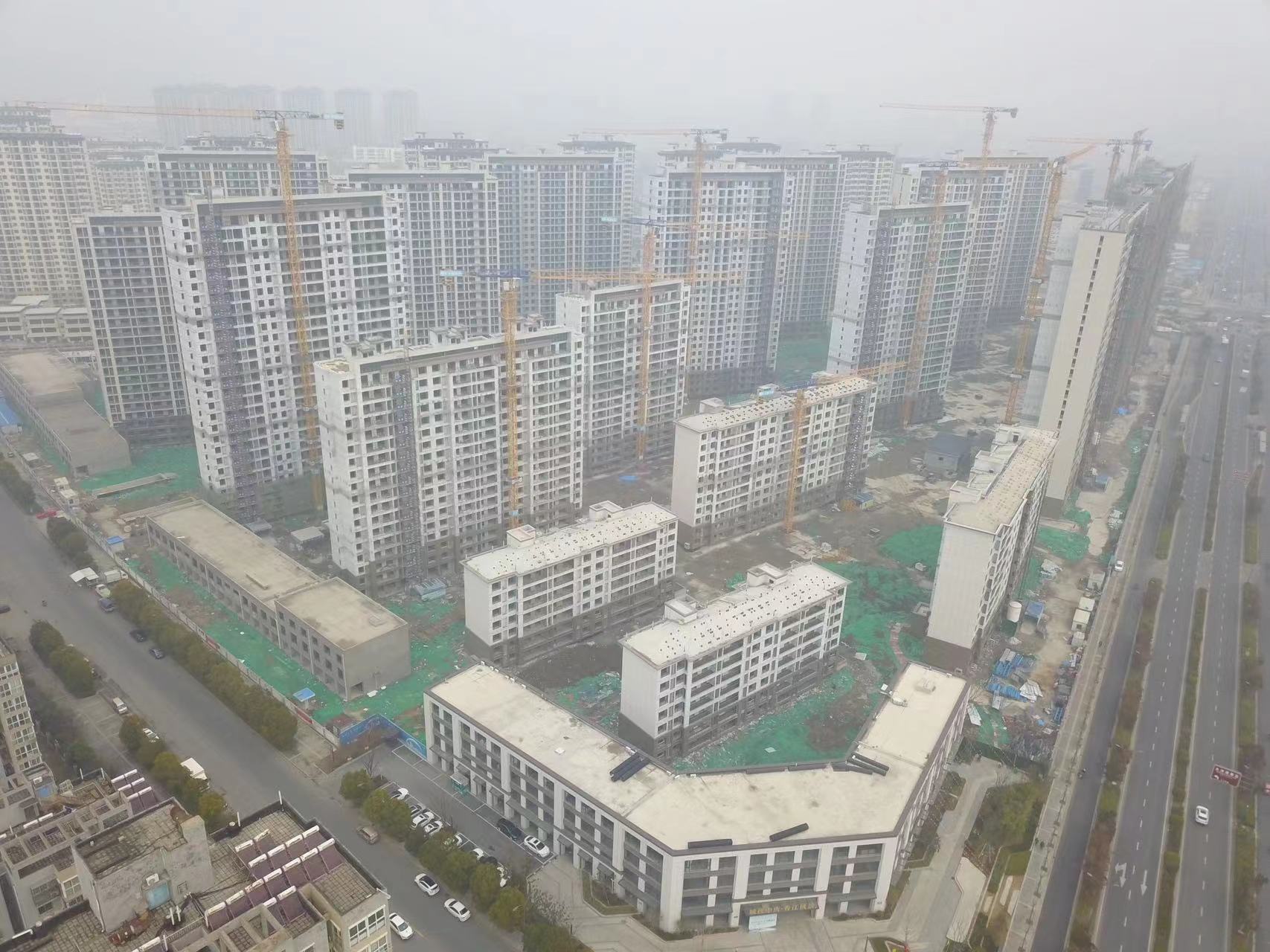 另一個將在今年上半年竣工的安置房項目榮沁苑建筑工地上,十幾幢樓房主體外墻已基本完成,有的已經拆除了腳手架?,F場工人們正在進行裝飾裝修及公建配套施工。